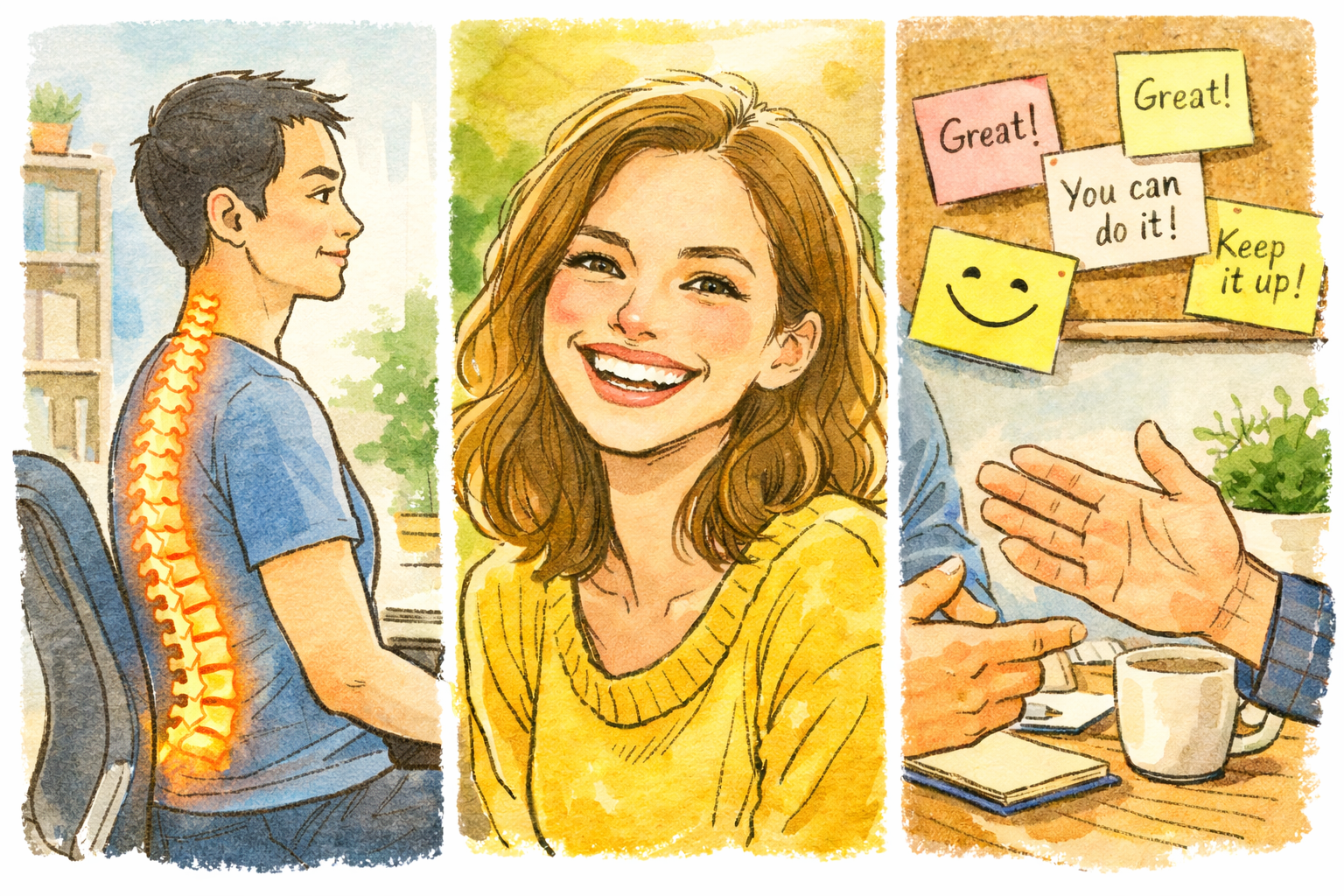 私自身も、意識して背筋を伸ばすだけで、不思議と前向きな気持ちになれる瞬間を何度も経験しています。