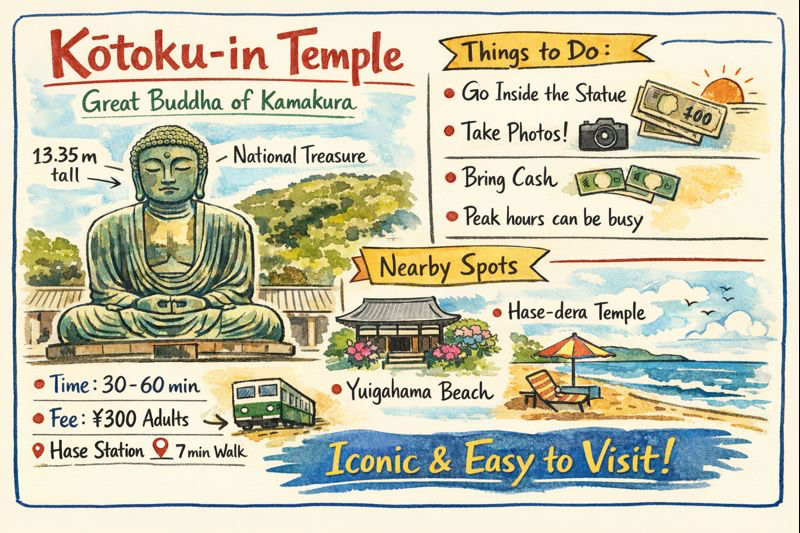 If you are visiting Kamakura for the first time, Kōtoku-in is one of the easiest and most rewarding places to visit. The site is compact, easy to walk, and can be enjoyed in a short amount of time, making it ideal for travelers with limited schedules.