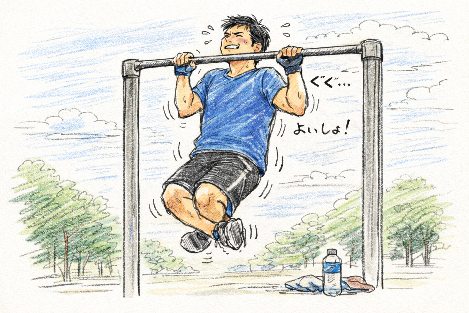私は、毎日散歩をしに外に出るので、散歩をして体が温まったところで、懸垂をやることにしました。無理して、ケガになるといけないですからね!数日たつと、連続はできないものの、単発なら3回ぐらいできるようになりました。そして、最初の頃は背筋が張る感覚があるので、やはり背筋が重要なんだと感じました。